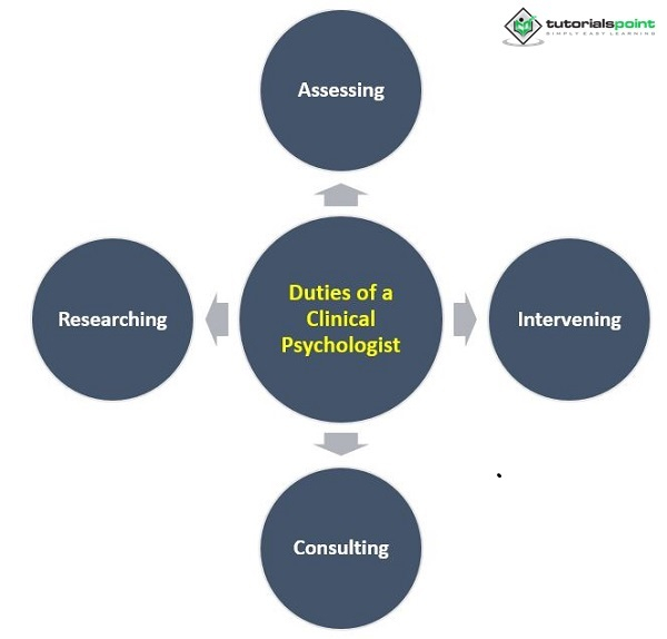 來自各行各業和各個年齡段的個人都可以從臨床心理學中獲得心理健康治療。技術和方法可能因實踐而異。然而,臨床心理學專注於透過心理測試和評估來評估客戶的心理健康,並提供適當的解決方案。除了這些主要職責外,臨床心理學家有時還會進行研究並擔任顧問。臨床心理學家主要職責如下: