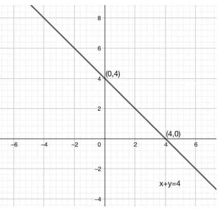 4) 繪製$\mathrm{x\:+\:y\:=\:4}$的圖形