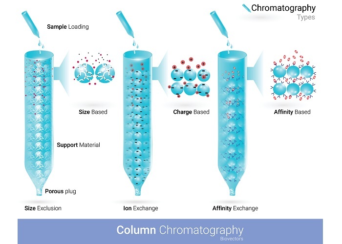 最常見的型別是吸附色譜法、離子交換色譜法、尺寸排阻色譜法和親和色譜法。
