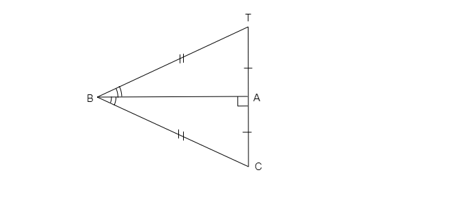 在 $\Delta BAT$ 和 $\Delta ABC$ 中,給定三角形全等;