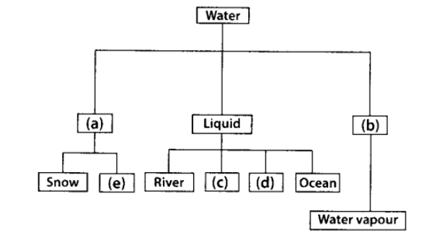 在標記為 (a) 至 (e) 的方框中填寫適當的單詞以完成下表。