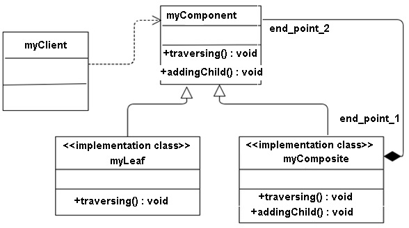 在這裡,我們可以看到組合和葉類都實現了元件。重要的部分是組合類,它還包含由組合關係表示的元件物件。