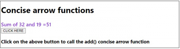 <h3>Click on the above button to call the add() concise arrow function</h3>