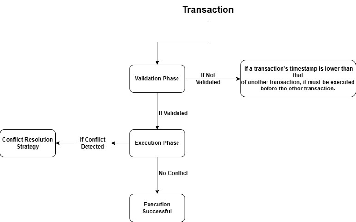 執行階段 - 在執行階段,時間戳排序演算法按照驗證階段確定的順序執行事務。如果事務之間存在衝突,該演算法使用衝突解決策略來解決衝突。一種策略是中止具有較低時間戳的事務,而另一種策略是延遲具有較低時間戳的事務,直到另一個事務完成。