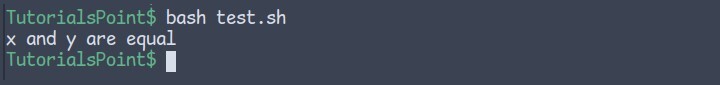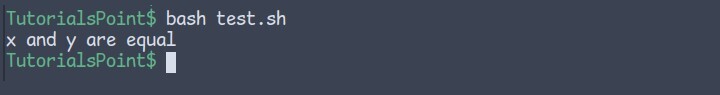 #!/bin/bash x=2 y=2 if test $x -eq $y then echo "x and y are equal" fi exit 0