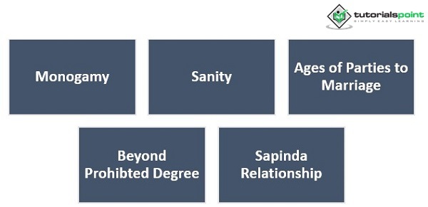 根據印度教法,婚姻是一種聖禮,需要驗證上述婚姻要素。該法案中規定的每一項有效要素背後都有其制定原因。其目的是在印度教習俗和社會需求之間保持和諧的關係。因此,為了舉行有效的印度教婚姻,當事人必須是一夫一妻制,神志清醒,已成年,不在禁止結婚的親屬關係內,並且不屬於薩賓達關係。符合這些條件的婚姻被認為是有效的,並在1955年《印度教婚姻法》中生效。