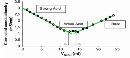 因此,這種滴定有助於利用電導率測量來確定滴定的終點,稱為**電導滴定法**。