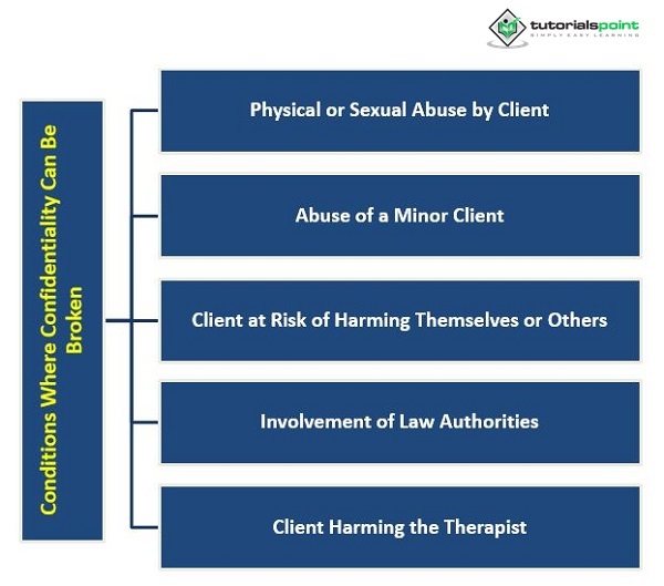 這種信任使客戶能夠感到足夠安全,可以分享他們的想法、感受和經歷,而不用擔心受到評判或報復。如果存在保密性,客戶可能會更有可能分享重要資訊,這可能會阻礙治療過程。在心理學中,保密原則有幾個例外情況。儘管在前面的章節中進行了廣泛的討論,但我們將再次簡要地審查它們 -