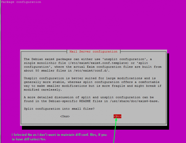 ## Edit this file and /etc/mailname by hand and execute update-exim4.conf # yourself or use 'dpkg-reconfigure exim4-config'# # Please note that this is _not_ a dpkg-conffile and that automatically changes # to this file might happen. The code handling this will honor your local # changes, so this is usually fine, but will break local schemes that mess # around with multiple versions of the file. ## update-exim4.conf uses this file to determine variable values to generate # exim configuration macros for the configuration file. ## Most settings found in here do have corresponding questions in the # Debconf configuration, but not all of them. ## This is a Debian specific file dc_eximconfig_configtype='internet' dc_other_hostnames='server.com' dc_local_interfaces='127.0.0.1' dc_readhost='' dc_relay_domains='192.168.1.1' dc_minimaldns='false' dc_relay_nets='cgi.com' dc_smarthost='' CFILEMODE='644' dc_use_split_config='false' dc_hide_mailname='' dc_mailname_in_oh='true' dc_localdelivery='maildir_home'