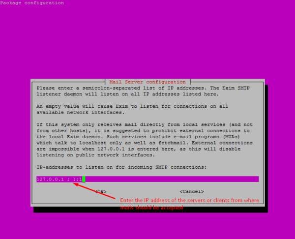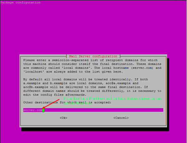 # hostname testserver.com # sudo –i (to Enter with root permissions) # apt-get update # apt-get install exim4