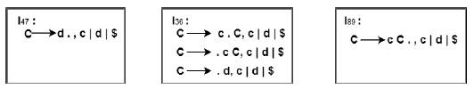 同樣,goto(I3, d) = I4, goto(I6, d) = I7 ∴ goto(I36, d) = I47