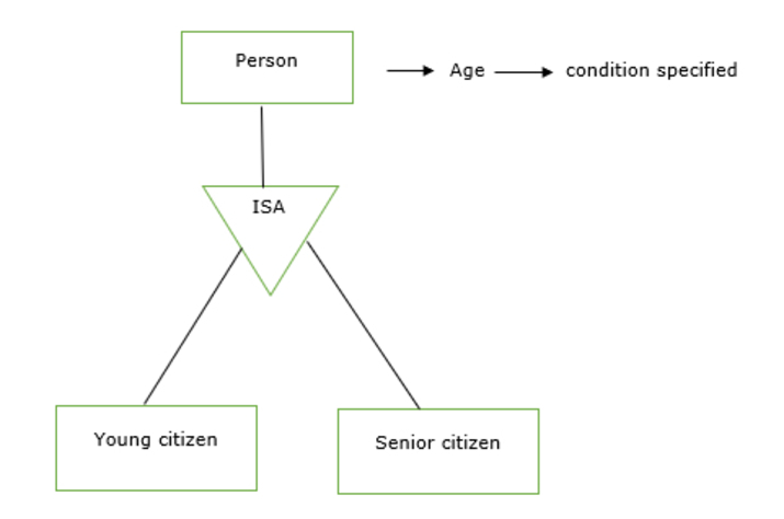 例如,如果包含名為 job_type 的屬性,則滿足條件 job_type="secretary" 和 job_type="instructor" 的任何實體分別包含在較高級別實體集 employee 的 secretary 和 instructor 中。