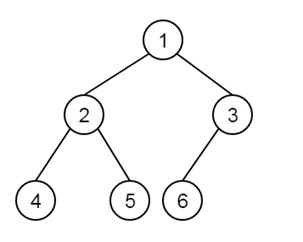 假設我們有一個數組 A[],包含 n 個元素。我們必須以分層遍歷順序從陣列中構建二叉樹。因此陣列中的元素從左到右將按層填充到從 0 級開始的樹中。因此,如果陣列為 A = [1, 2, 3, 4, 5, 6],則樹為如下所示