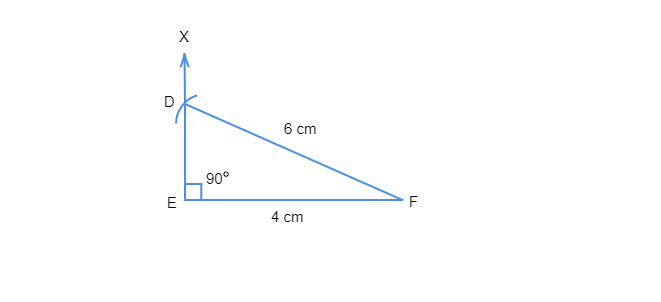 以F為圓心,半徑為6釐米作弧,該弧將與EX相交於點D。