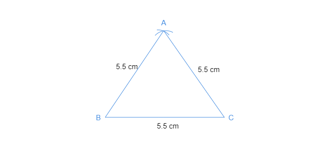 以B點為圓心,5.5釐米為半徑畫弧;以C點為圓心,5.5釐米為半徑畫弧。