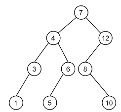 假設我們有一個層序遍歷。從這個遍歷中,我們必須生成這棵樹。因此,如果遍歷類似於 [7, 4, 12, 3, 6, 8, 1, 5, 10],那麼這棵樹將如下: -