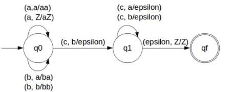 給定問題的 PDA 如下: