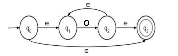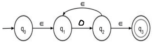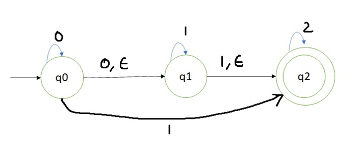 如果我們得到起始符號 1,則透過 epsilon 轉移,我們可以將狀態從 q0 更改為 q1,然後輸入 1 可以處於狀態 q1。