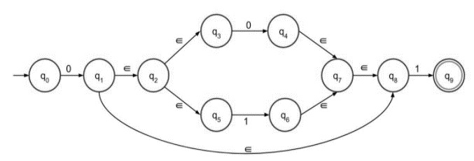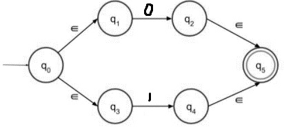 步驟 3 - (0+1) 的帶有 epsilon 的 NFA 如下:
