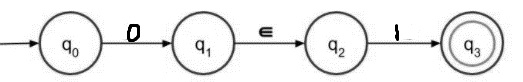 在非確定性有限自動機 (NFA) 中,∈ 轉移用於在不使用來自輸入集 Σ 的任何符號的情況下從一個狀態移動到另一個狀態。