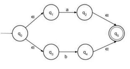 步驟 1 − (a+b) 的帶有 ε 的 NFA 如下: