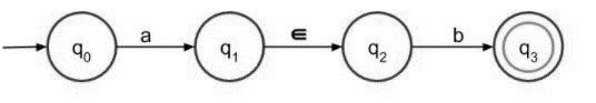 非確定有限自動機 (NFA) 中的 ε 轉移用於在不使用來自輸入集 Σ 的任何符號的情況下從一個狀態移動到另一個狀態。