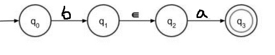 步驟 3 − ba 的帶有 ε 的 NFA 如下: