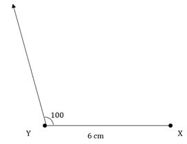 步驟 3 - 將量角器的中心放在 Y 點,測量 100° 的角,從 Y 點畫一條射線。
