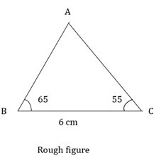 1) 在 ΔABC 中,BC = 6 釐米 $\mathrm{m\angle\:A\:=\:65°\:n\angle\:C\:=\:55°}$