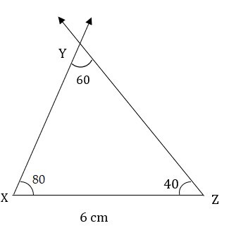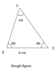 4) 在 ΔXYZ 中,XZ = 6 釐米,$\mathrm{m\angle\:Y\:=\:60°,m\angle\:Z\:=\:40°}$