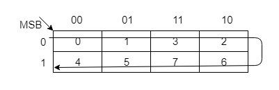 您可以使用其他方法構造格雷碼,但它們可能無法像上面給出的方法那樣並行執行。例如,3位格雷碼可以使用K圖進行構造,如下所示