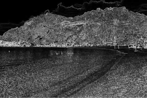 cv2.imwrite('beach_convol.jpg', edge)輸入影像