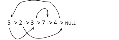 說明:如果我們將新列表附加到給定連結串列中原始節點的值,並將原始連結串列的隨機指標替換為新列表中的下一個節點,那麼它將變成 5-> 2- >3 -> 7-> 4->