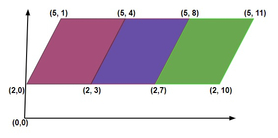 解釋 - 給定 (x, y) 點,並使用這些點,我們可以形成 3 個平行四邊形,如圖所示。