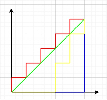 給定變數 x1、x2、y1、y2,表示二維座標系上的兩個點 (x1, y1) 和 (x2, y2)。目標是找到所有路徑,這些路徑的距離等於這兩個點之間的曼哈頓距離。