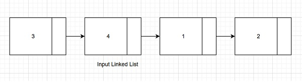 我們可以看到這裡的 K 是 2。輸入連結串列是原始排序連結串列中旋轉 2 個節點的結果。