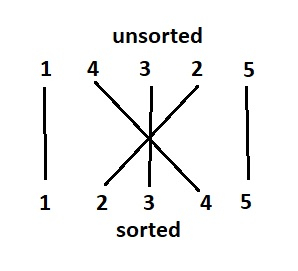Arr[]={ 1,2,4,3,5 } 如圖所示,共有3條交叉線。