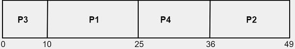 執行多個程序的順序將使用下面給出的甘特圖表示
