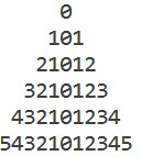 假設有一個正數值n,任務是生成一個三角形圖案,即列印數字的對稱影像並顯示結果