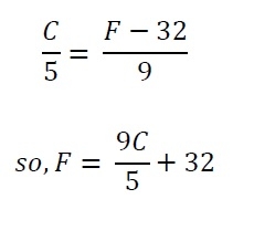 Begin Take the Celsius temperature in C calculate F = (9C/5)+32 return F End