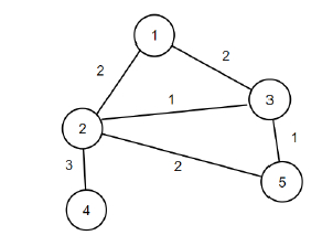 因此,如果輸入為n = 5,m = 6,edges = {{2, {1, 2}}, {2, {1, 3}}, {1, {2, 3}}, {3, {2, 4}}, {2, {2, 5}}, {1, {3, 5}}},則輸出為4。