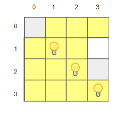 因此,如果輸入類似於h = 4,w = 4,bulb = {{1, 1}, {2, 2}, {3, 3}},obstacle = {{0, 0}, {2, 3}},則輸出將為13。