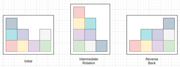假設我們有一個包含n個元素的陣列A。A[i]表示在第i列上堆疊了A[i]個塊。所有塊都在一個封閉的透明邊界框內。現在,如果我們將整個大盒子順時針旋轉90°,那麼由於重力方向的變化,塊會掉落,然後將其反轉到其先前的方向。然後找到這些操作後類似於A的新陣列。