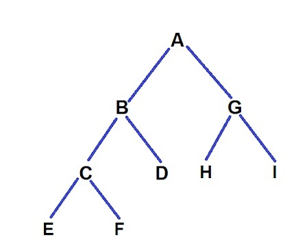 The paths were : 1. A -> B -> C -> E length = 4 2. A -> B -> C -> F length = 4 3. A -> B -> D length = 3 4. A -> G -> H length = 3 5. A -> B -> I length = 3 Now as you can see paths 3, 4, 5 have length of 3 which is less than given k so we remove the leaf nodes of these paths i.e. D, H, I. Now for path 4 and 5 when H and I are removed we notice that now G is also a leaf node with path length 2 so we again remove node G and here our program ends.