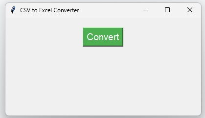 # Creating Main Window root = tk.Tk() root.title("CSV to Excel Converter") root.geometry("400x200") root.config(bg="#f0f0f0")