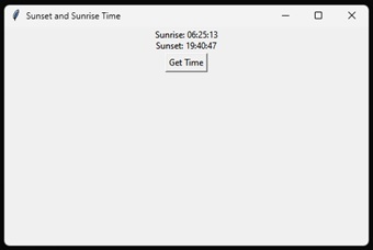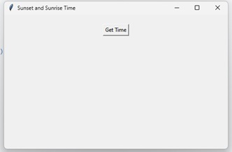 執行指令碼後,GUI 視窗將出現。單擊“獲取時間”按鈕,紐約的日出和日落時間將顯示。