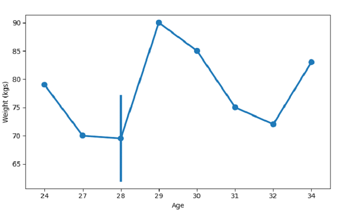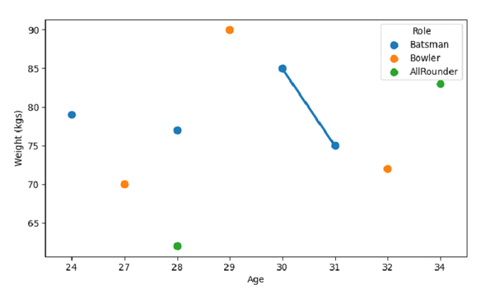 seaborn.pointplot() 用於建立點圖。假設我們的資料集採用了 CSV 檔案形式 - Cricketers.csv