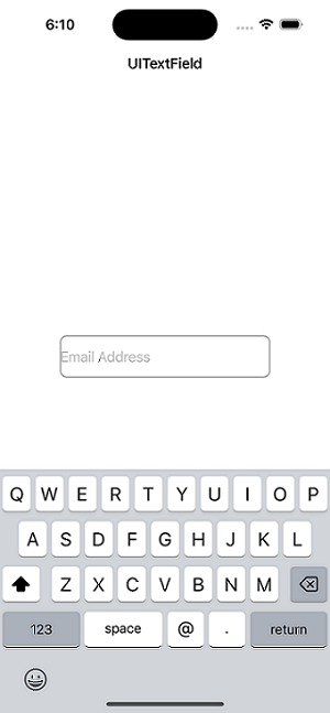import UIKit class TestController: UIViewController { private let emailTextField: UITextField = { let textField = UITextField() textField.placeholder = "Email Address" textField.translatesAutoresizingMaskIntoConstraints = false textField.layer.borderWidth = 1.0 textField.layer.cornerRadius = 8.0 textField.layer.borderColor = UIColor.gray.cgColor textField.layer.masksToBounds = true textField.keyboardType = .emailAddress textField.autocorrectionType = .no return textField }() override func viewDidLoad() { super.viewDidLoad() initialSetup() } private func initialSetup() { view.backgroundColor = .white navigationItem.title = "UITextField" view.addSubview(emailTextField) emailTextField.widthAnchor.constraint(equalToConstant: 250).isActive = true emailTextField.heightAnchor.constraint(equalToConstant: 50).isActive = true emailTextField.centerXAnchor.constraint(equalTo: view.centerXAnchor).isActive = true emailTextField.centerYAnchor.constraint(equalTo: view.centerYAnchor).isActive = true } }