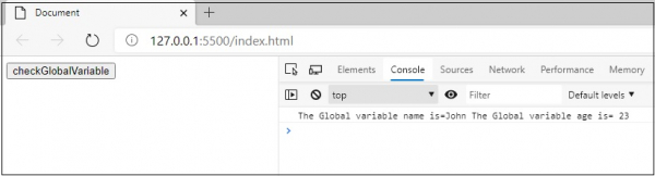 當單擊 checkGlobalvariable 按鈕時,以下輸出將顯示:-