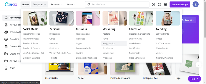 從你的Canva主頁點選**模板**選項。